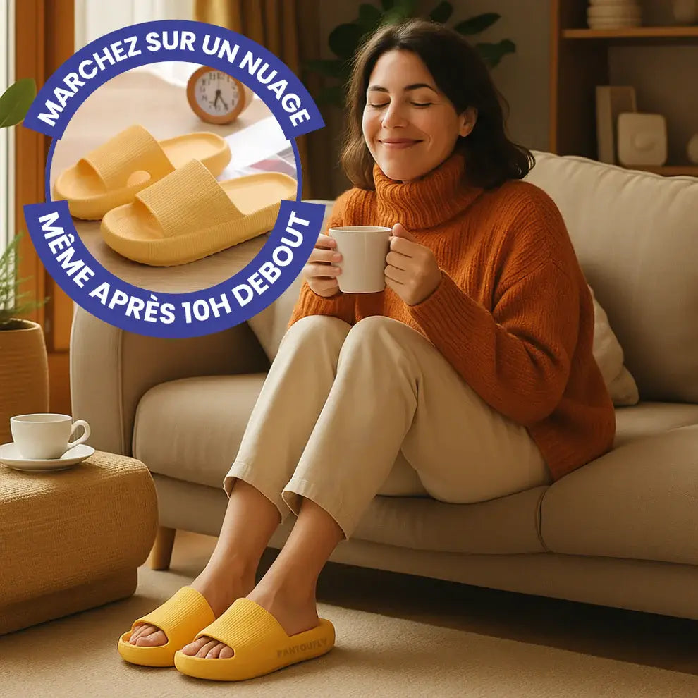 Après PantoufLuxe™ : amorti nuageux, soutien plantaire naturel et une légèreté incroyable à chaque pas.